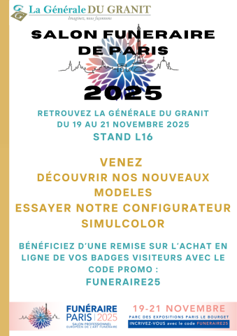 Avec la Générale du Granit, bénéficiez de cette remise en saisissant le code promo : FUNERAIRE25 lors de votre inscription.